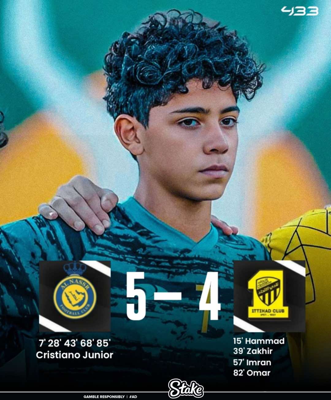 კერძოდ, "ალ-ნასრისა" და "ალ იტიჰადის" პატარების გუნდის შეხვედრაში კრიშტიანუ ჟუნიორმა 5 გოლი გაიტანა.