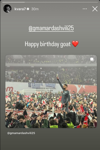 ქართველი ფეხბურთელის იუბილეს სოციალურ ქსელში ხვიჩა კვარაცხელია გამოეხმაურა.