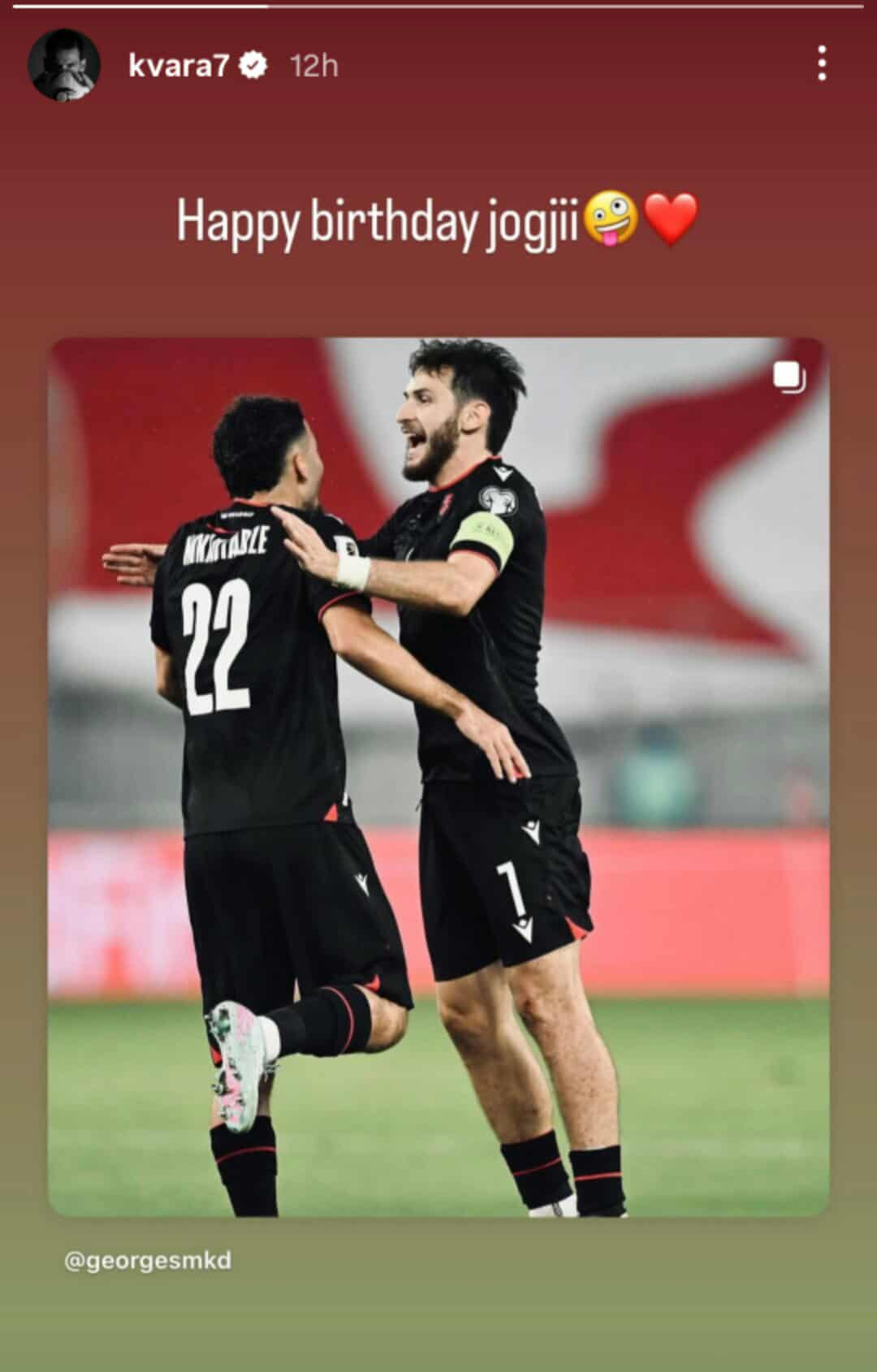 ჟორჟს დაბადების დღე მისმა მეგობარმა ხვიჩა კვარაცხელიამ ინსტაგრამზე მიულოცა: