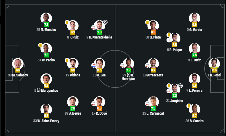 აღსანიშნავია, რომ ხვიჩა კვარაცხელიამ ამ თამაშში 90 წუთი ითამაშა და SofaScore-სგან 7.9 შეფასება მიიღო.