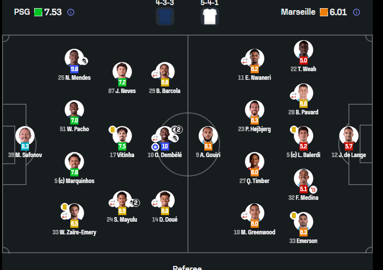 აღსანიშნავია, რომ ამ მატჩის მეორე ტაიმში მოედანზე ხვიჩა კვარაცხელიაც ვიხილეთ, რომელმაც ულამაზესი გოლი გაიტანა და 7.5 შეფასება მიიღო.