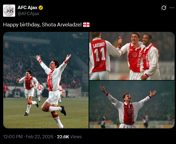 აღსანიშნავია, რომ "აიაქსის" ოფიციალურმა გვერდმა შოთას იუბილე საჯაროდ მიულოცა.
