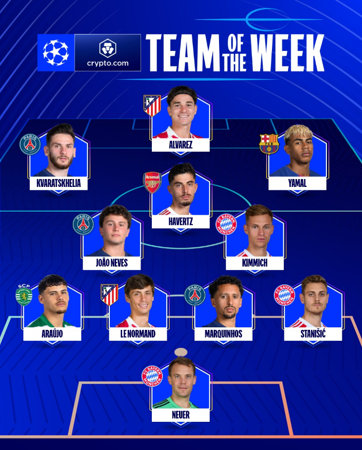 კერძოდ, კვარა ჩემპიონთა ლიგის კვირის გუნდში მოხვდა და ადგილი სხვა ვარსკვლავების გვერდით დაიკავა.