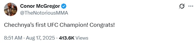 ჩეჩენის გამარჯვებას გამოეხმაურა კონოტ მაკგრეგორი - პირველი ჩემპიონი ჩეჩნეთიდან, გილოცავ.